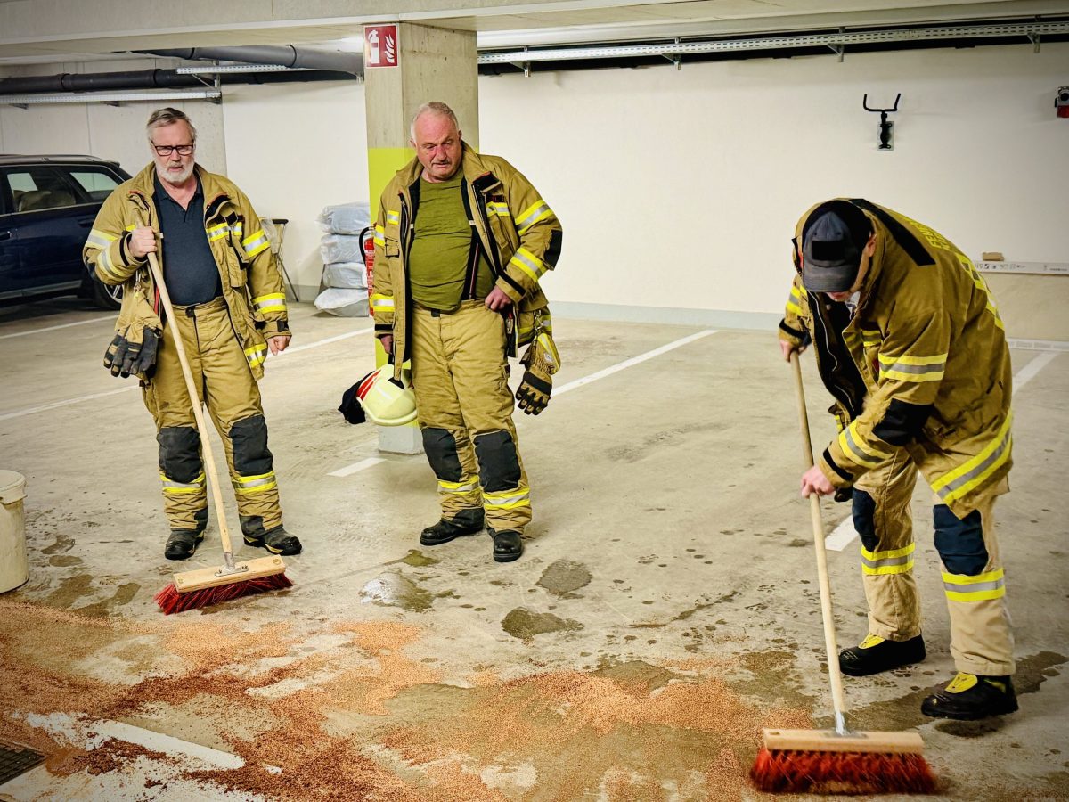 Kurz nach Mittag wurde die Feuerwehr Kirchbichl zu einem Betriebsmittelaustritt in einer Tiefgarage eines Wohnhauses alarmiert. Die ausgerückten Einsatzkräfte entfernten die Flüssigkeit mithilfe von Bindemittel und konnten nach kürzester Zeit wieder ins Gerätehaus einrücken.