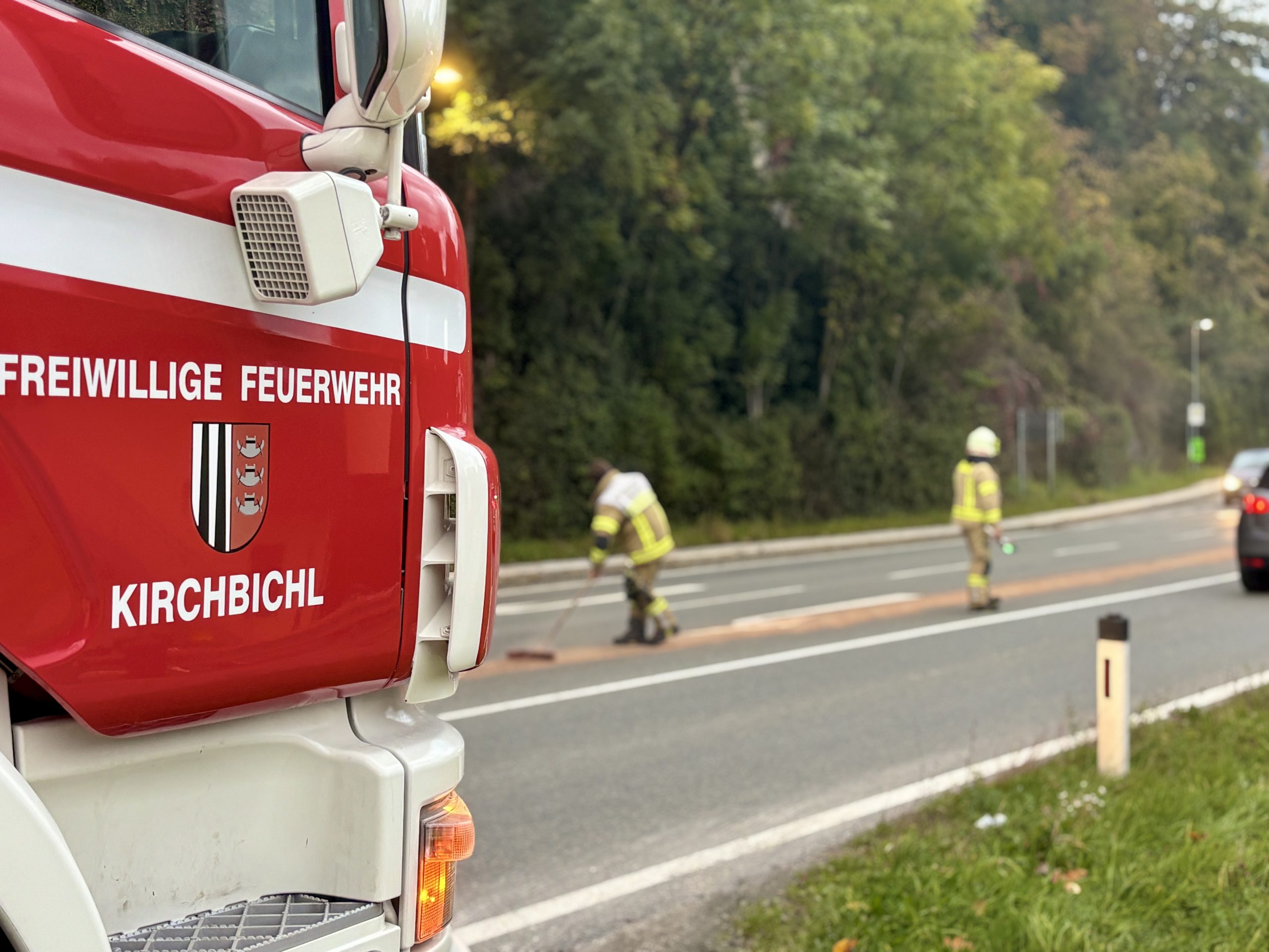 Daraufhin erfolgte durch den Kommandanten der FF Kastengstatt die Nachalarmierung der Feuerwehr Kirchbichl, da sich der Betriebsmittelaustritt weiter auf die Lofererstraße und Gasteigstraße ausgedehnt hatte.